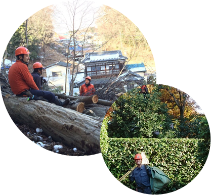 造園一式、剪定・伐採・草刈りなどの緑地管理、植栽や樹木移植などの緑化工事を主に行なっております。官公庁が発注する工事や委託、企業や学校の緑地管理、個人宅のお庭のお手入れなど幅広く対応致します。